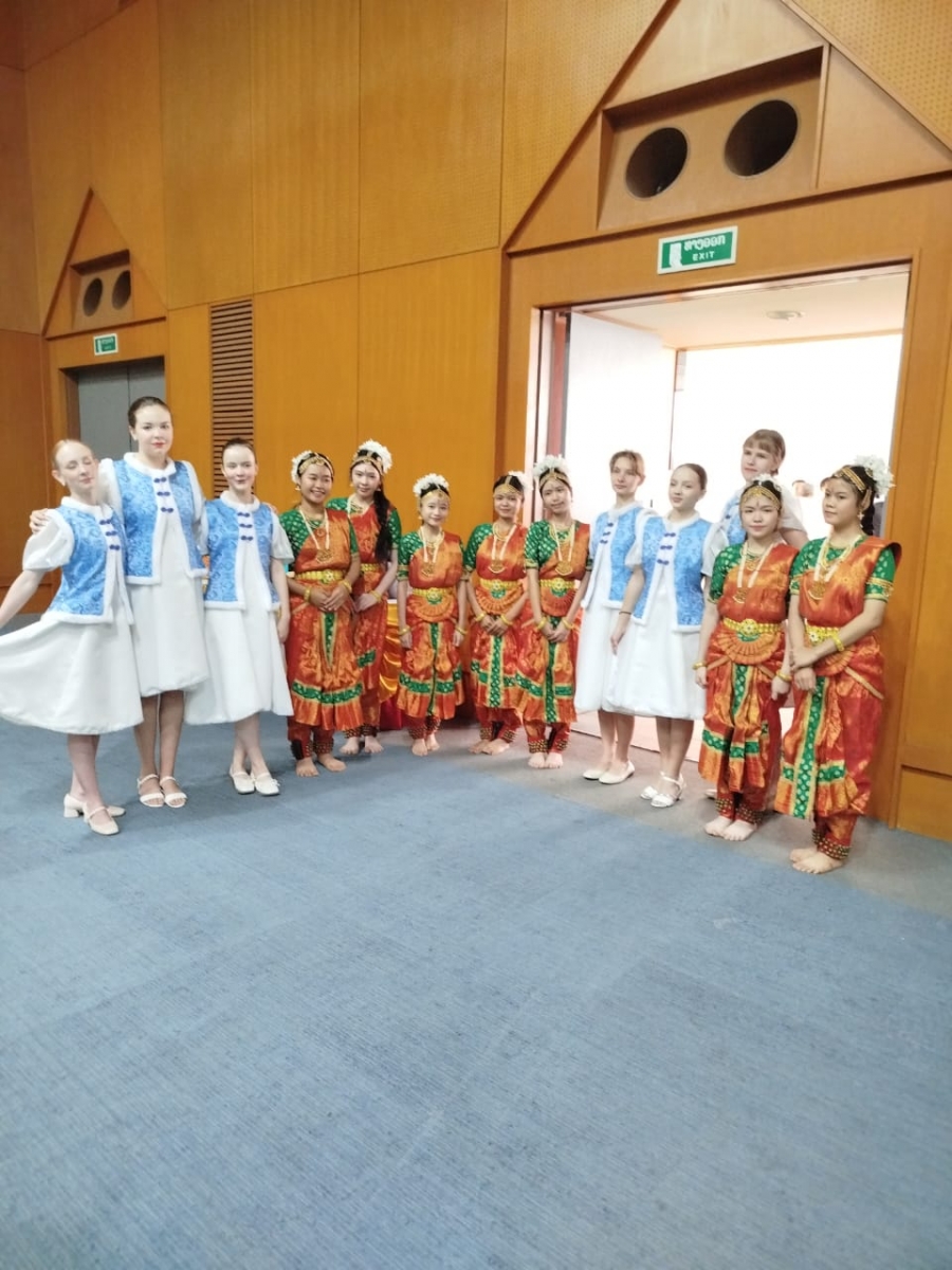 Встреча сопровождалась творческими номерами от Посольств и Представительств различных стран. Школьный танцевальный коллектив под руководством Натальи Николаевны Оголь представил нашу страну. Девичий танец органично вписался в тематику мероприятия.