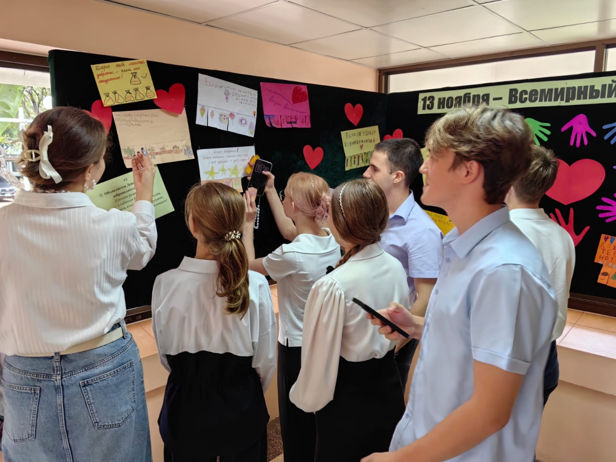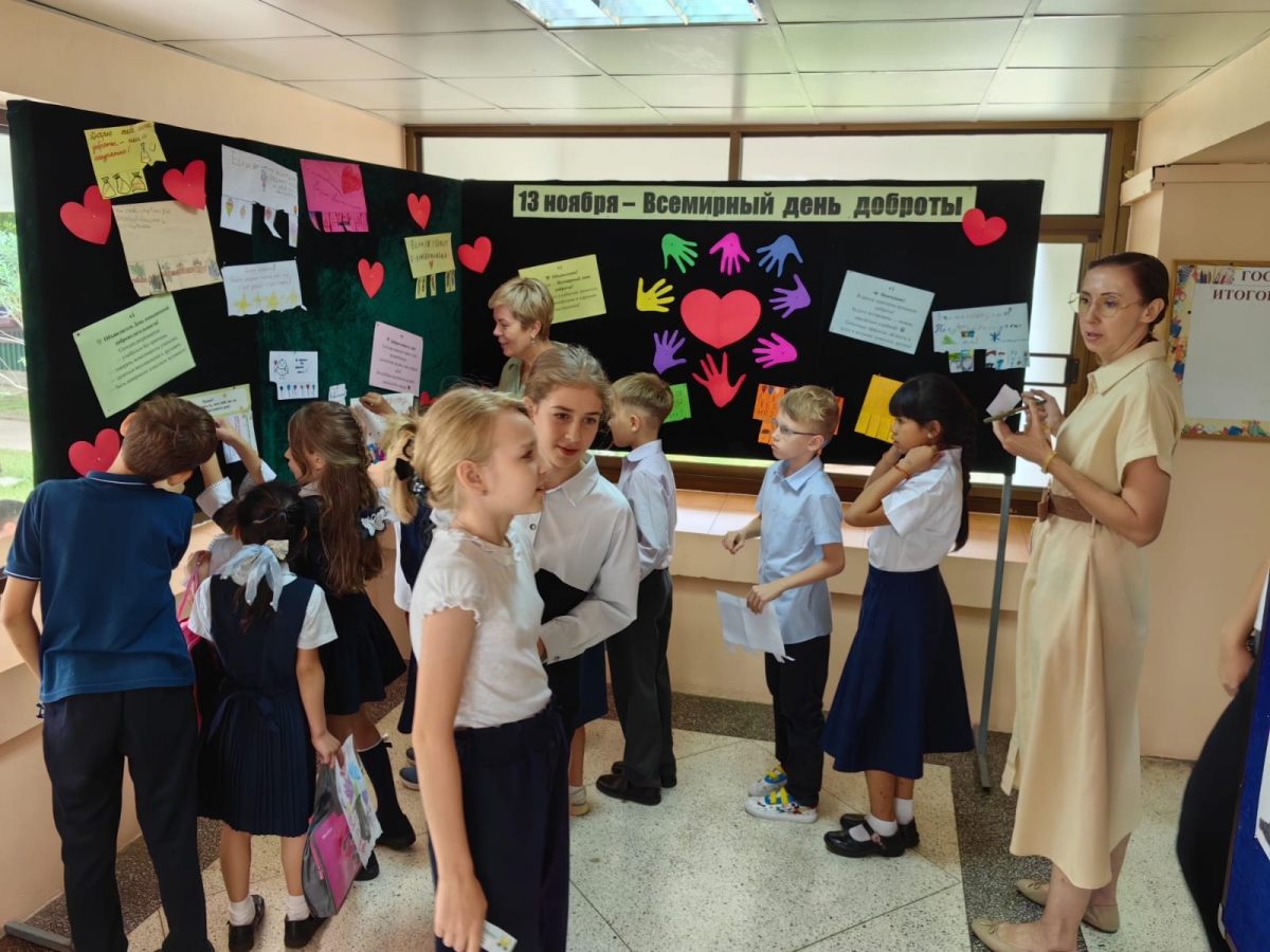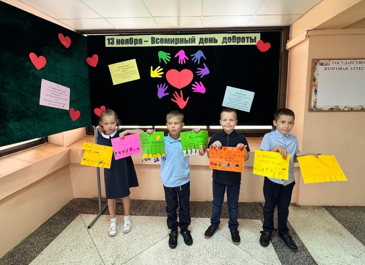Ежегодно, 13 ноября отмечается Всемирный день доброты. Это праздник действия! Это отличный повод провести с нашими детьми беседу на тему «Доброты». А где доброта, там и красота, хорошие поступки, человечность. В этот день младшие школьники сделали своими руками интересные и добрые объявления, а волонтёры-старшеклассники провели «добрые переменки».