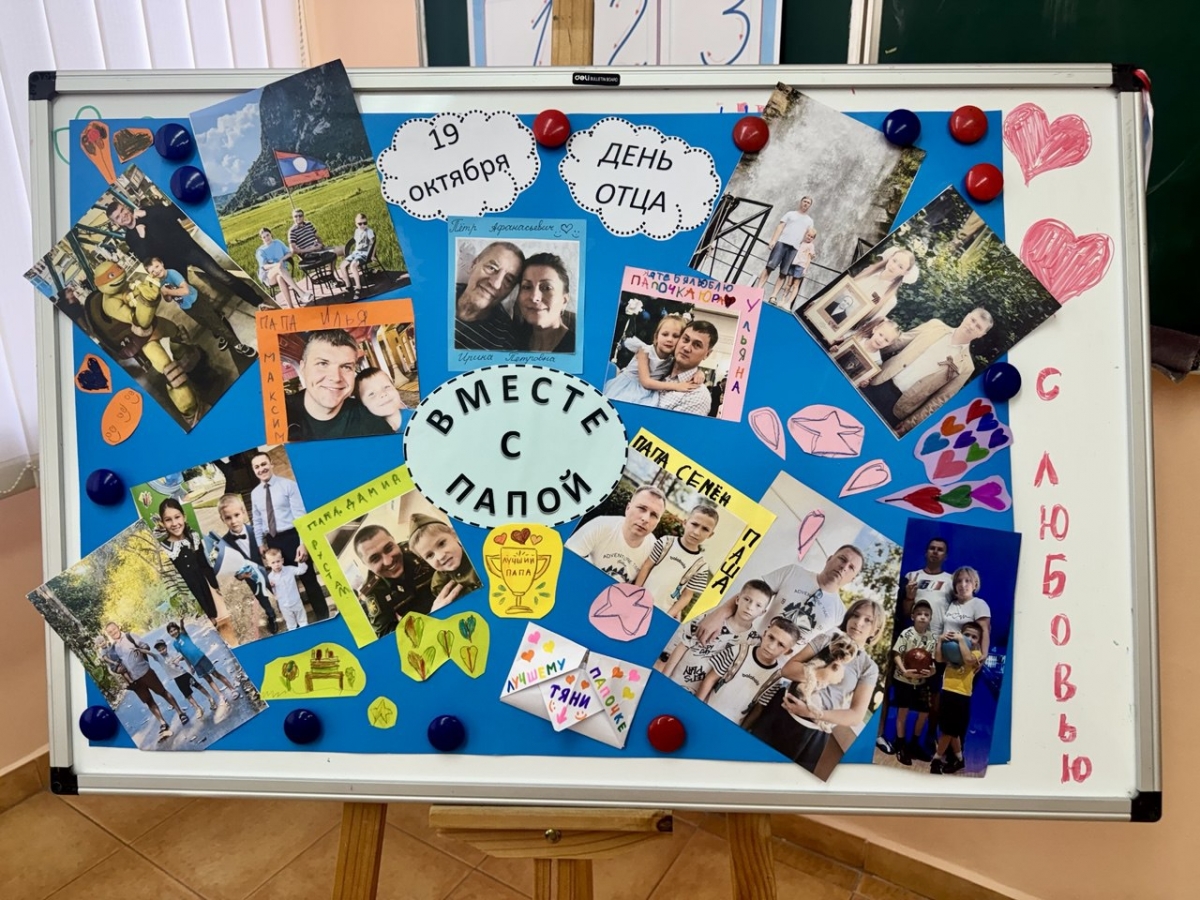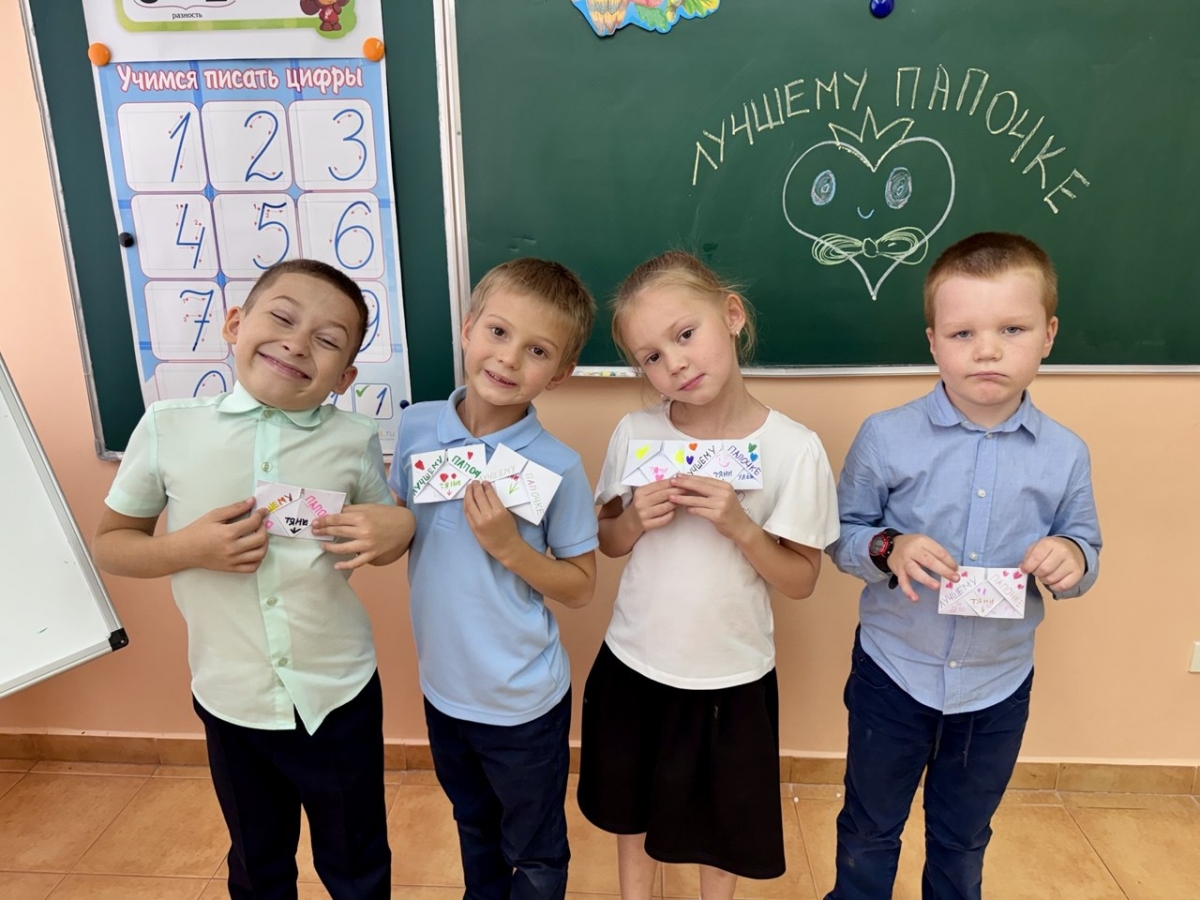 19 октября наша страна отмечала День отца. Папы учеников первого класса не остались без внимания и заботы. Ребята смастерили папам открытки с признанием в любви, нарисовали рисунки, оформили стенгазету и записали видеопоздравление совместно со своими братьями и сёстрами.