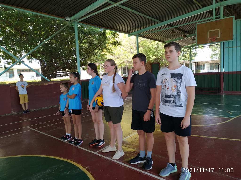 Встреча по пионерболу проходила среди учащихся 4-8 классов. Команда «Олимп» с первых минут игры взяла инициативу в свои руки и до конца первого сета уже не отдавала ее сопернику. Первый сет завершился со счетом «25 - 0» в ее пользу. Во втором сете игра шла на равных. Команда «Олимп» поначалу вела в счете, но ребята из команды «Афины» собрали волю в кулак, и сначала догнали соперников, а затем и вышли вперед. Но в последней, решающей подаче, благодаря игре опытных бойцов А. Черноиванова (8 класс) и Я. Дулькина (7 класс) команда «Олимп» завоевала победу во всей игре со счетом «2- 0». А помогли им в этом участники команды: Малейченко О. (7 класс), Мусина Е. (5 класс), Махмудова А. (4 класс) и Махмудова К. (2 класс).